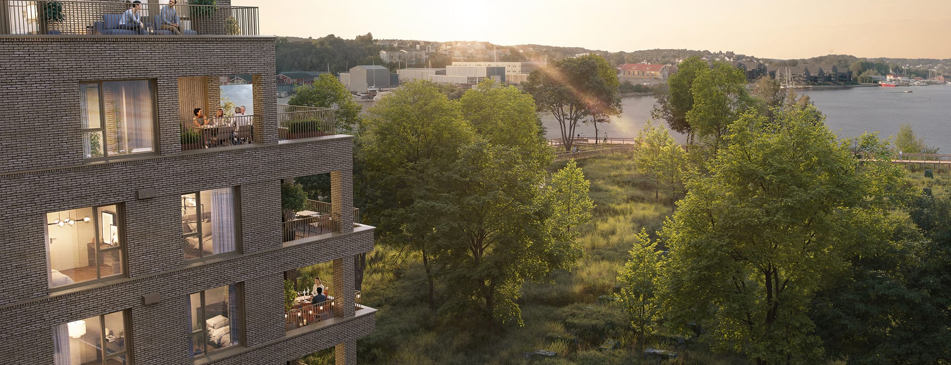 Livet på Innseilingen er et elveliv med mulighet for egen båtplass like utenfor døren og kveldssol som speiler seg i vannet.1-2-3 for Fredrikstad