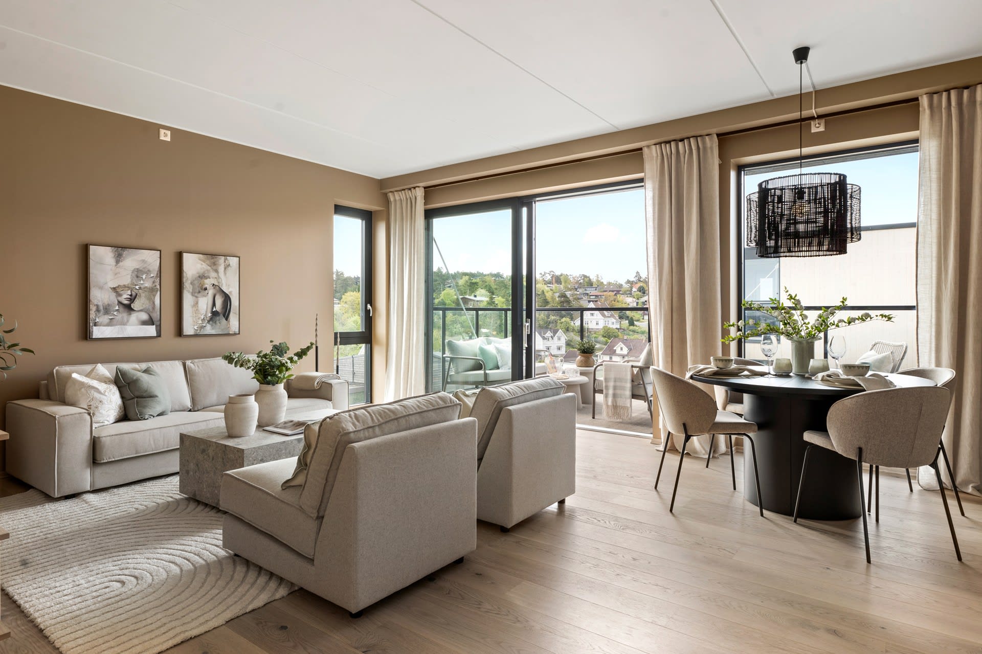Romslig 3-roms hjørneleilighet med vinduer i to retninger. Stor