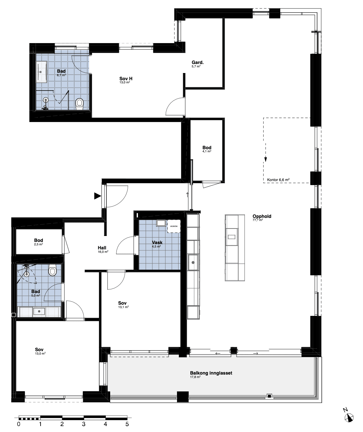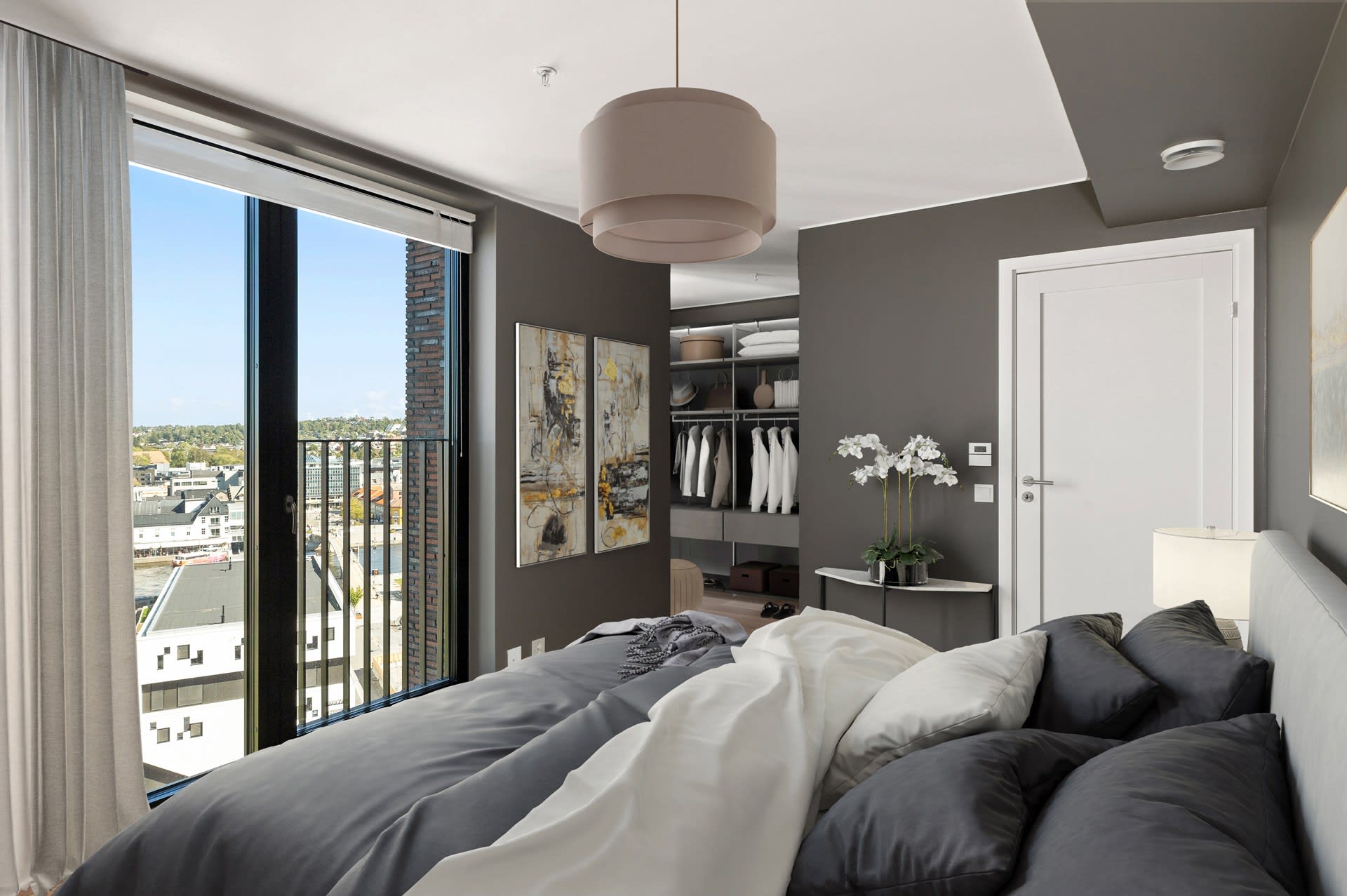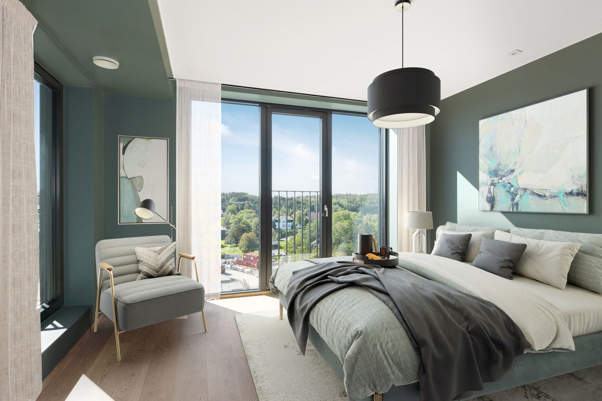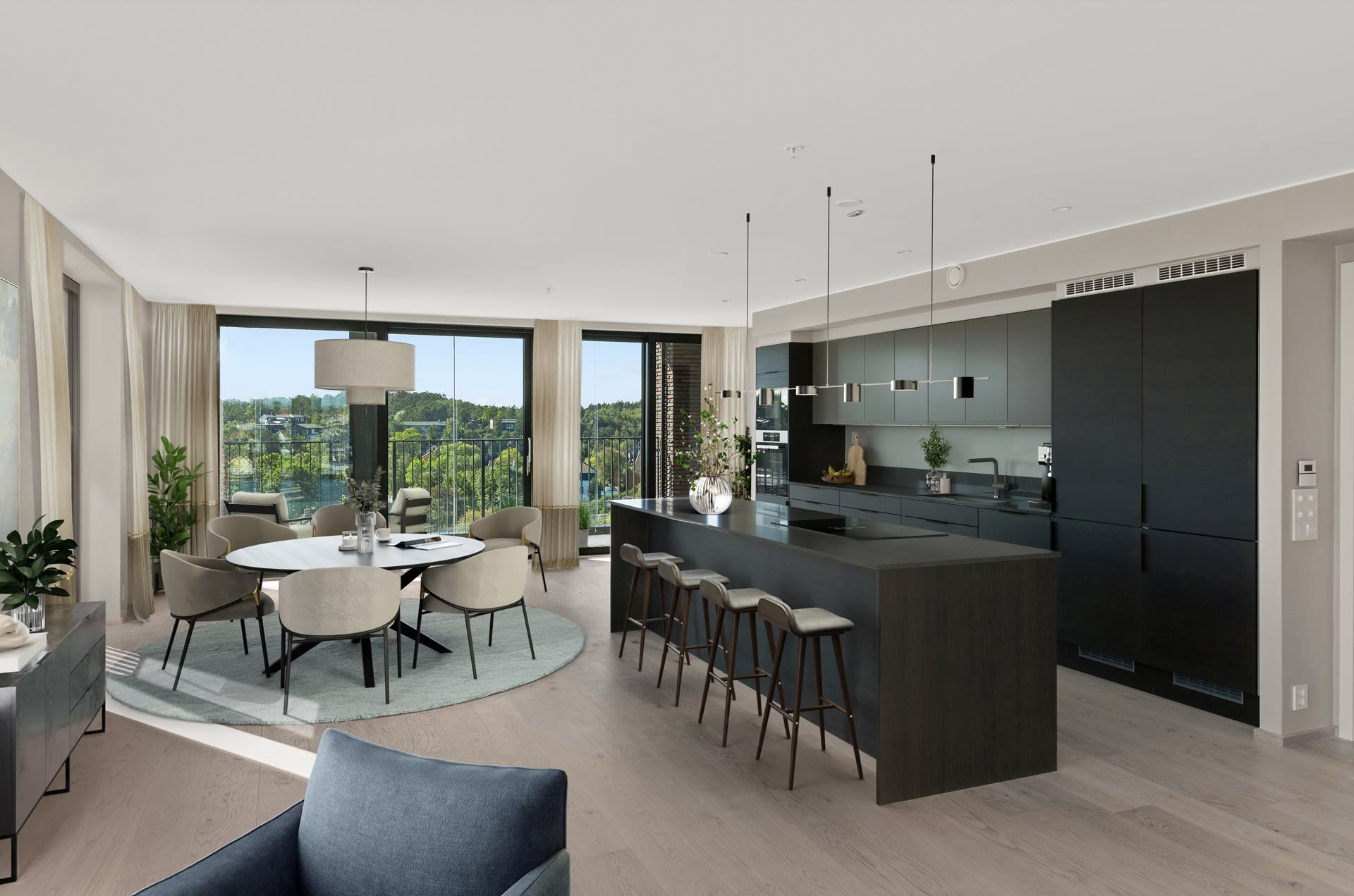 Enorm 4-romsleilighet som byr på en praktfull utsikt over byen. Stor hall med godt med oppbevaringsplass og adkomst til bod, bad, separat vaskerom og to romslige soverom med store vindusflater mot sør. Fra hallen er det dør inn til en stor og luftig kjøkken-/stueløsning med kjøkkenøy, ekstra bod og store vindusflater i tre retninger. Fra stuen er det adkomst til hovedsoverommet som har store vindusflater mot nord, eget bad og walk-in closet. Både kjøkken og det ene soverommet har skyvedører ut til en flott sørvendt balkong.