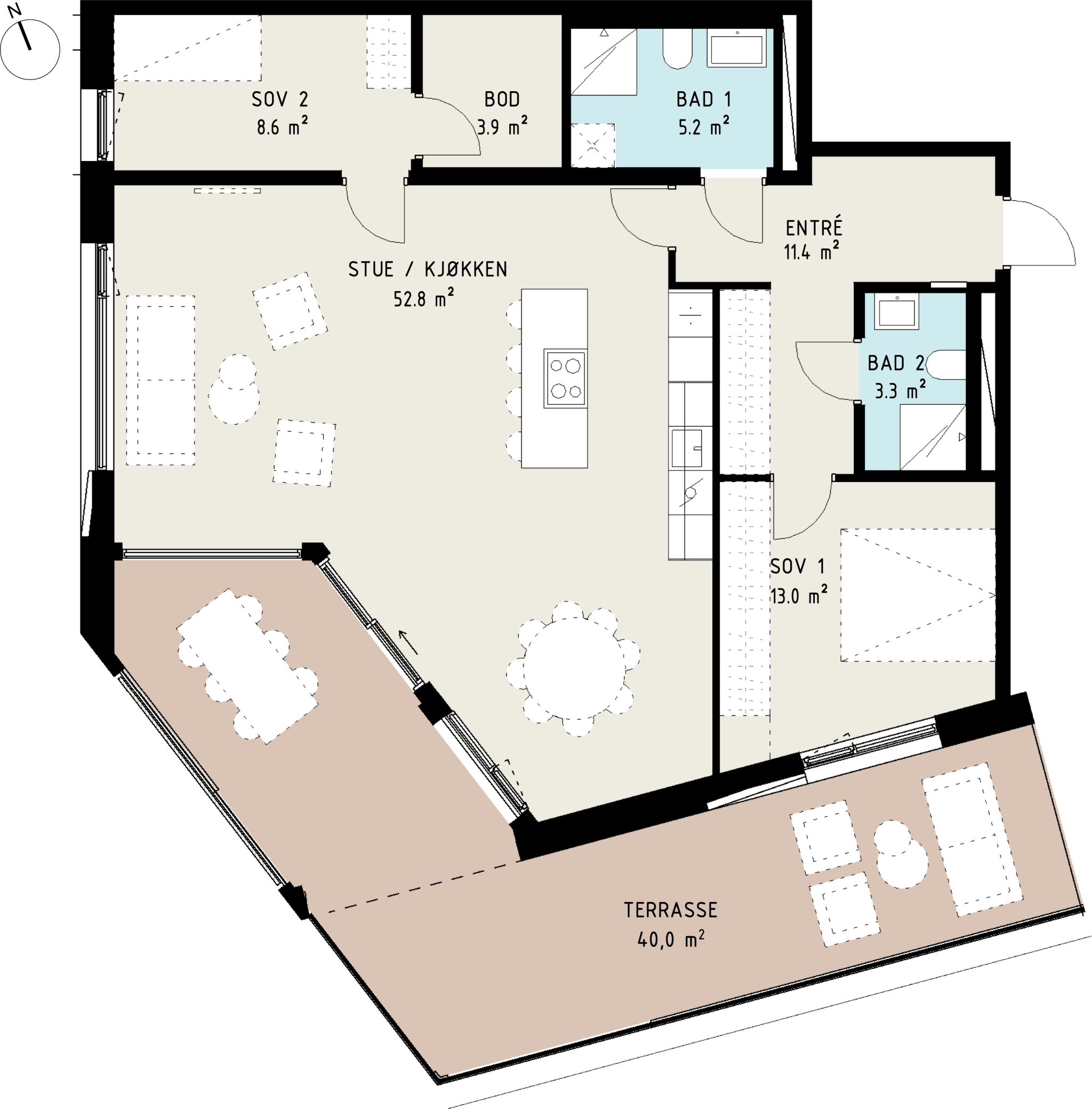 Velg mellom 3- eller 4-romsløsning