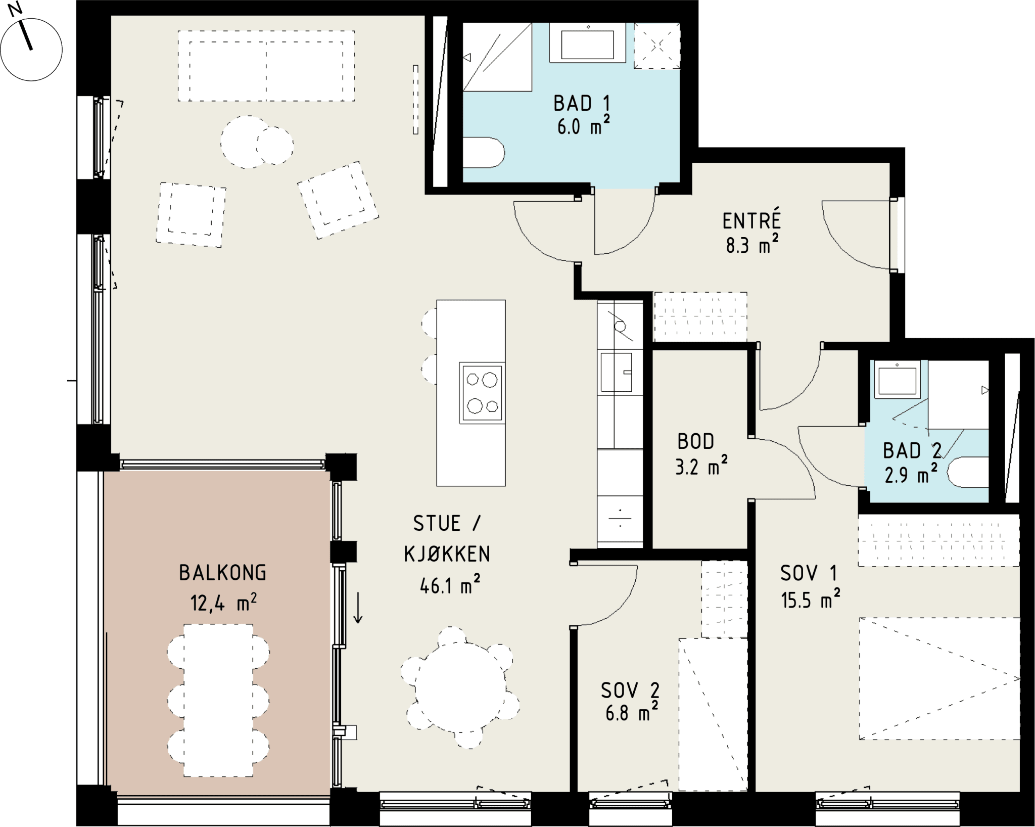 Velg mellom 3- eller 4-romsløsning