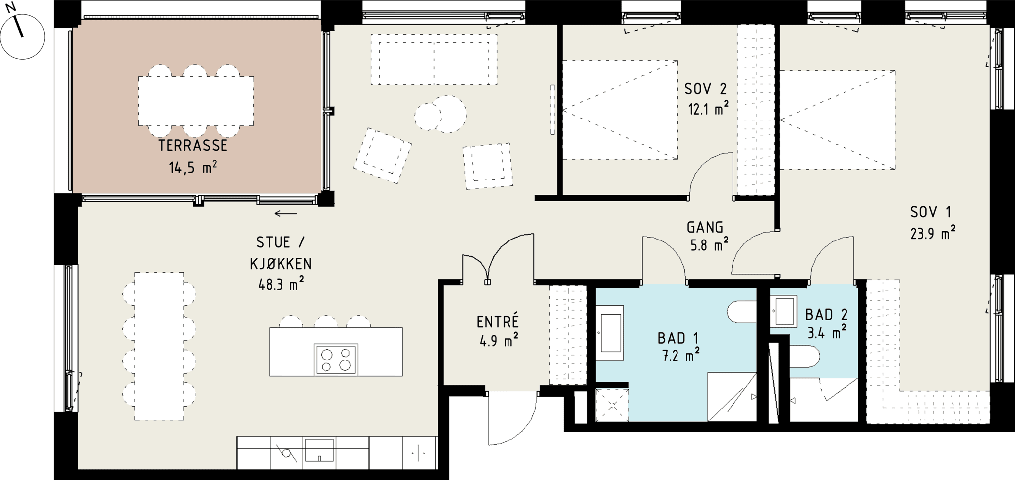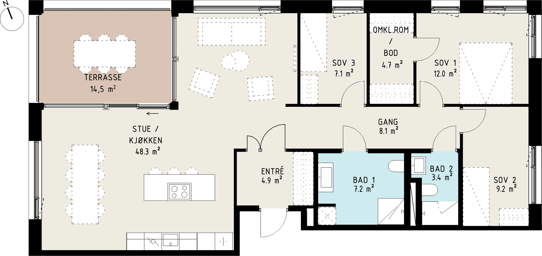 Velg mellom to 3-roms alternativer eller 4-romsløsning.