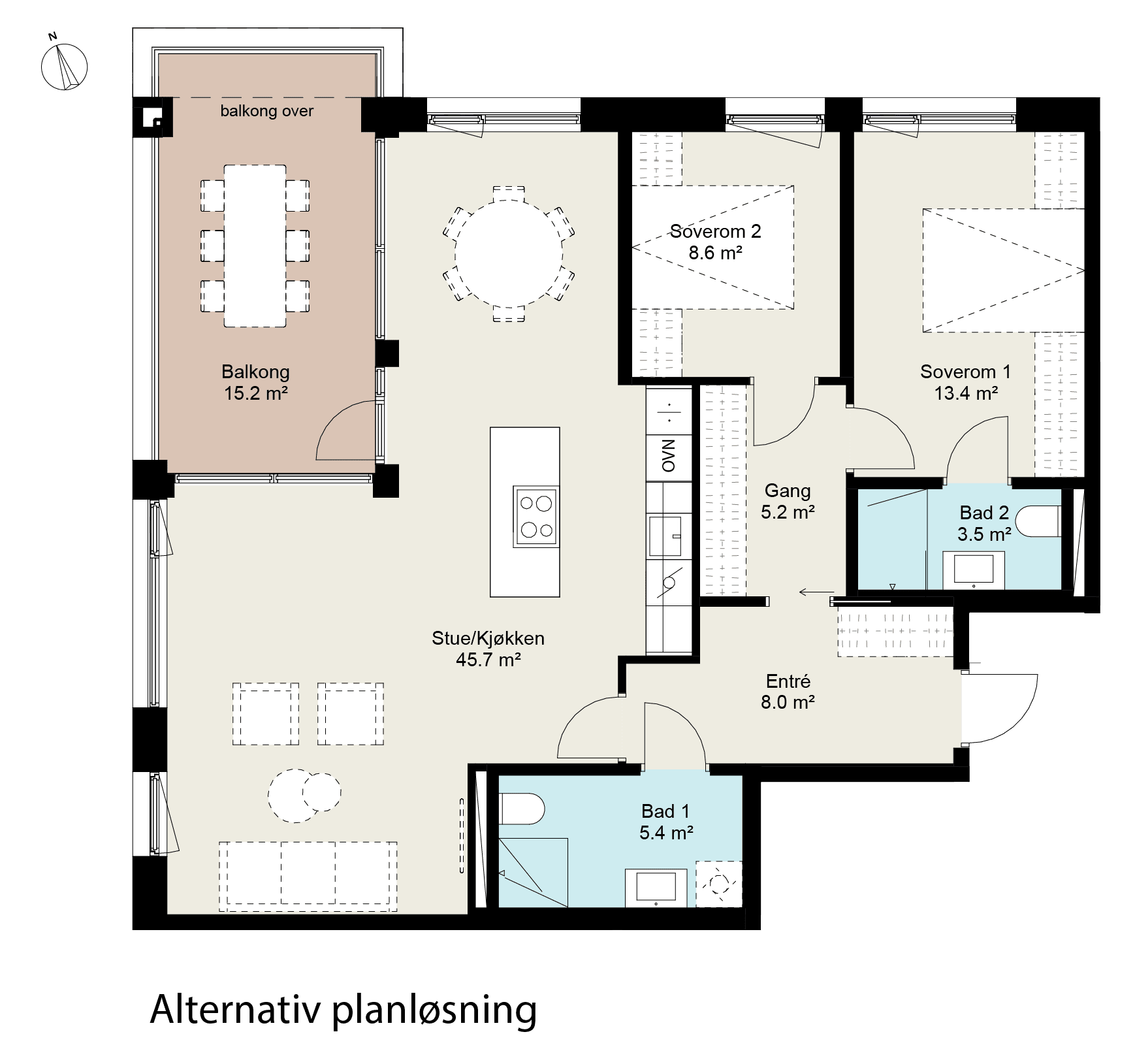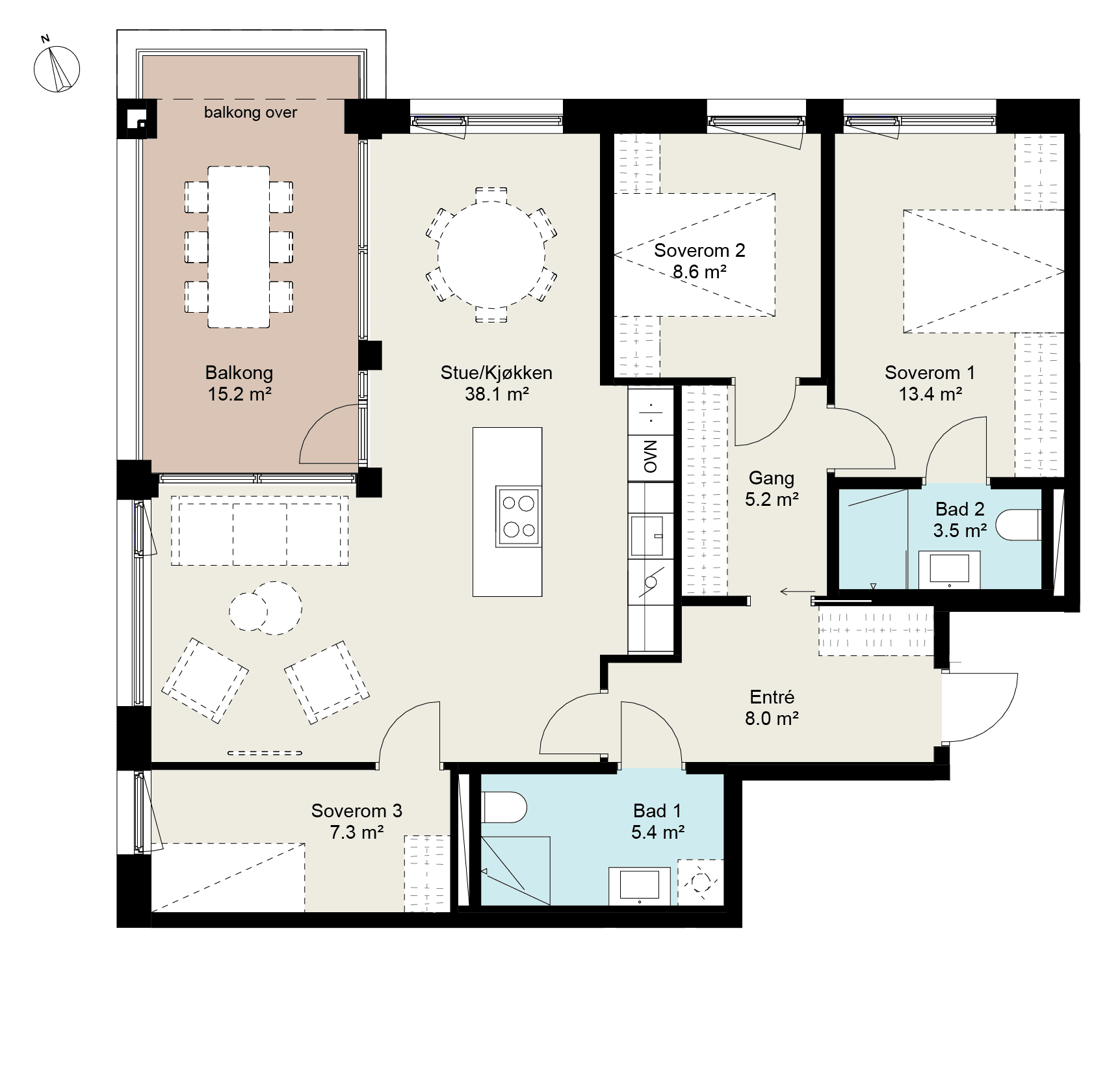 SOLGT! Fleksibel leilighet på 95,5 m² med mulighet for både 3- og 4-roms løsning – enten du ønsker ekstra rom eller større stue. Den store balkongen på 15,2 m² gir flott utsikt mot elva og båtlivet. To bad, romslig entré og store vindusflater sørger for høy bokomfort og mye dagslys.