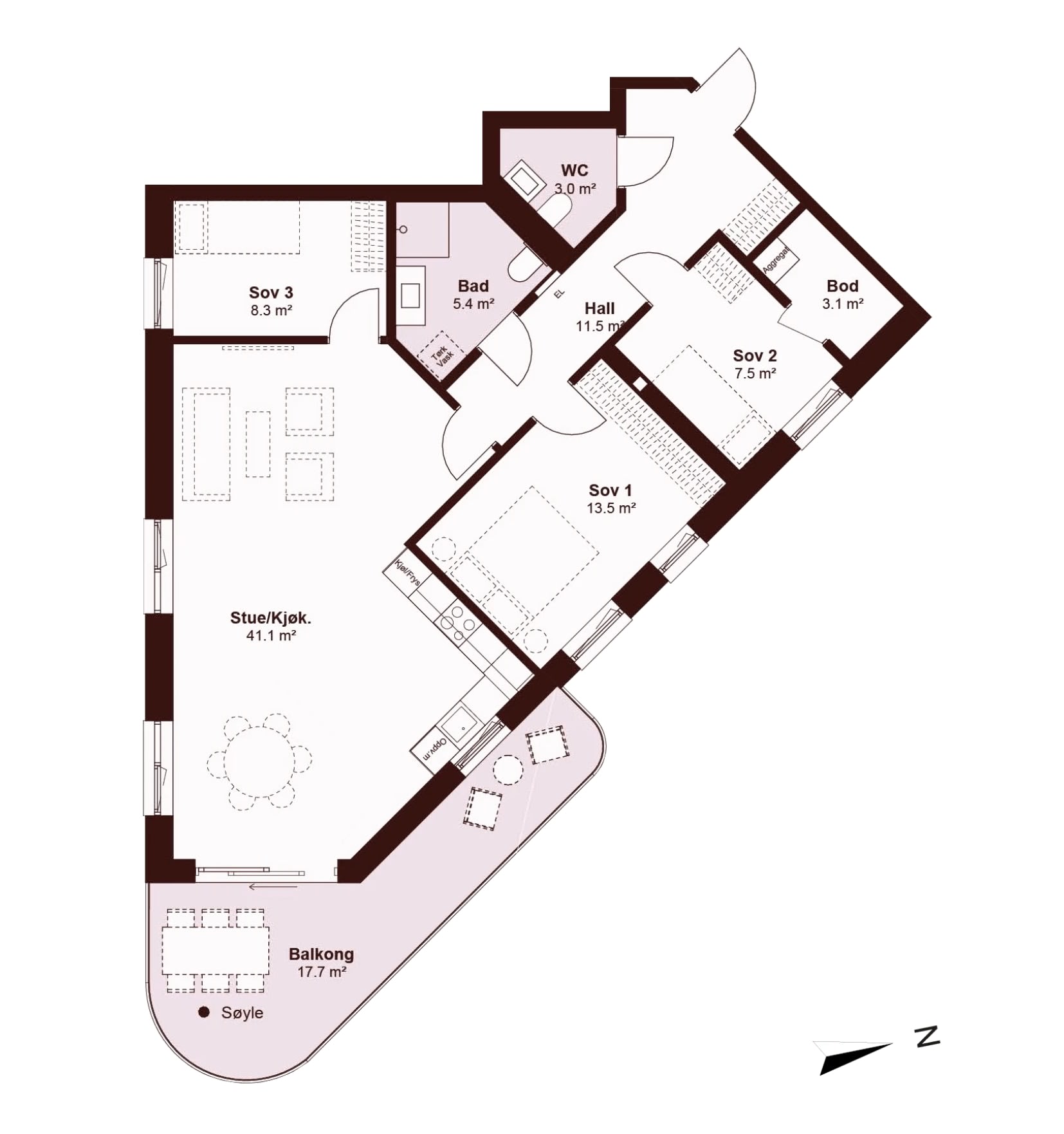 Nyt livet i Tårnene, her bor du høyt og luftig med kvalitet, eleganse og komfort. Illustrasjon: Avvik kan forekomme.