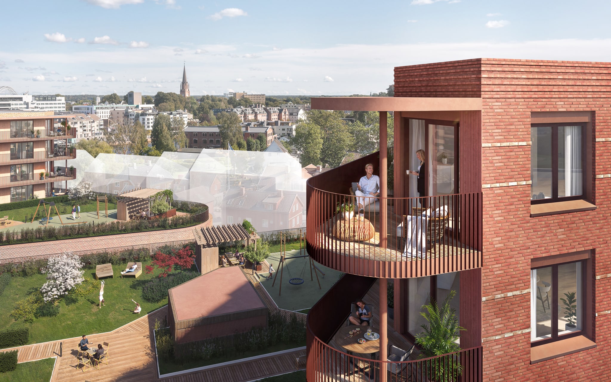 I de tre nederste etasjene av byggene kommer det handel, kontor, serveringssteder og tjenestevirksomheter. Høyt hevet over bygulvet kommer boligene fra fjerde etasje og oppover. På taket av tredje etasje blir det anlagt felles takhager som vil være tilgjengelig for beboerne i Tårnene.